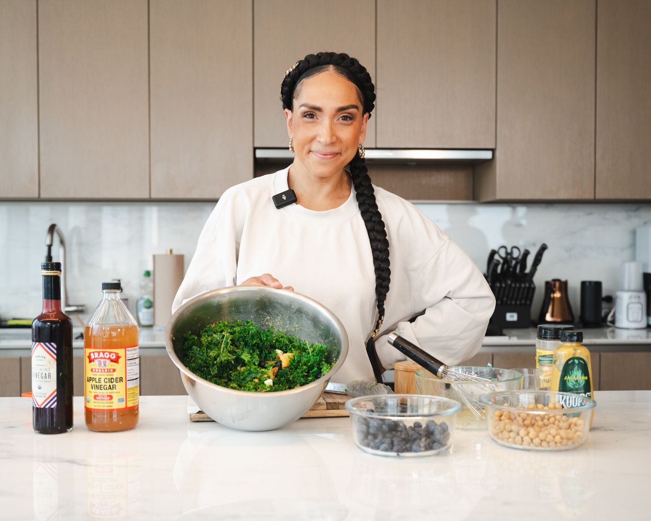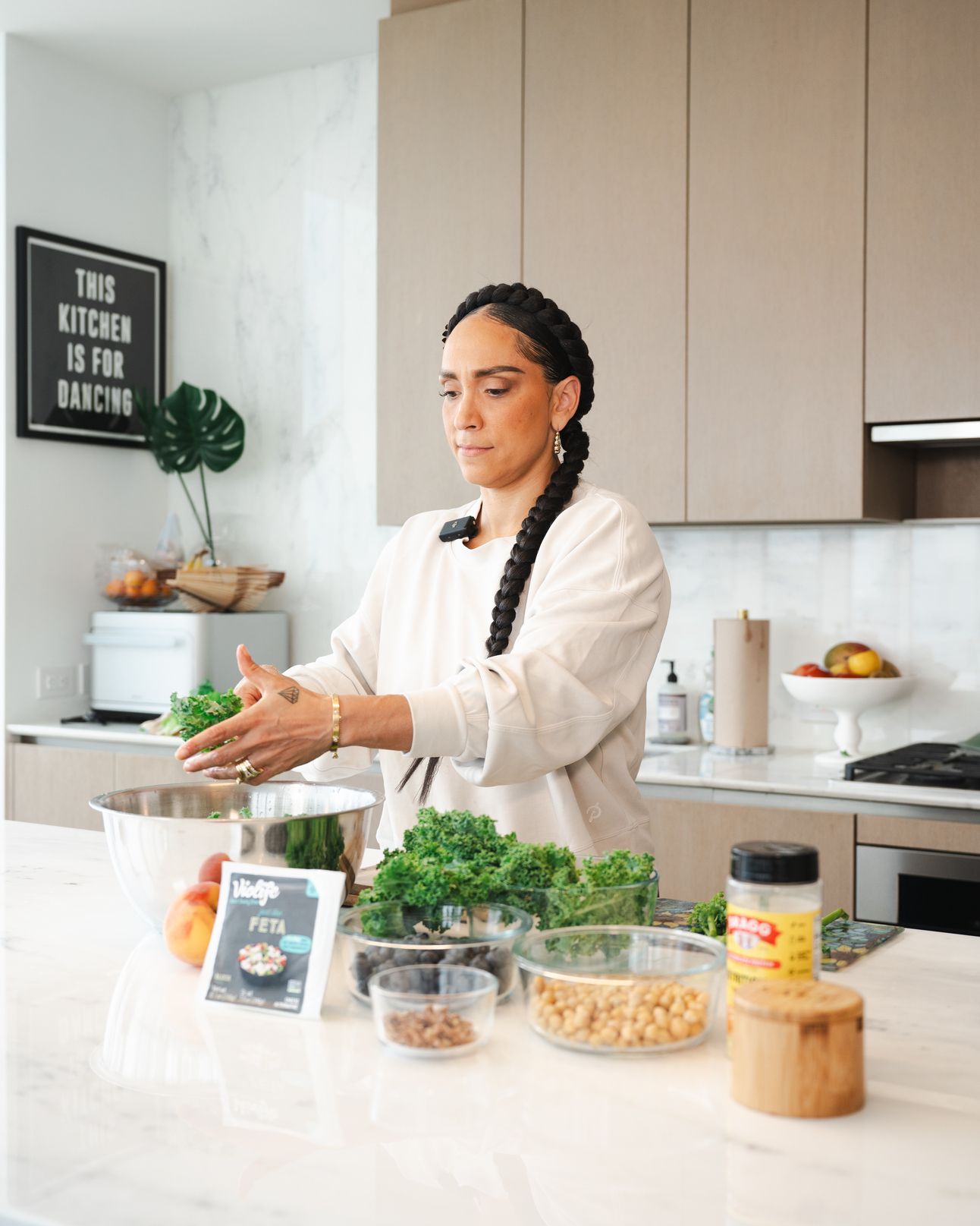 Fruit-Filled Salads 🥗 Let’s talk fresh, seasonal fuel! Today, I’m throwing together a super simple, summer-inspired, kale salad that’s packed with nutrients and bright flavors. We’re talking in-season favorites like blueberries and peaches with a protein boost from chickpeas, all tied together with crunchy pecans and creamy nut cheese. This salad is the perfect way to fuel your hustle. Let’s get into it!